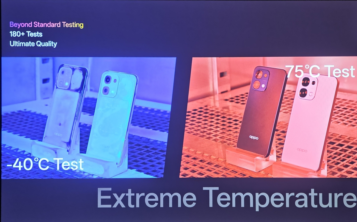OPPOは「Apex Guard」の哲学のもと、堅牢なハードウェアと滑らかなソフトウェアを両立させた「次世代の品質(Next-Level Quality)」を追求しています。検証活動は「日常の使用を超え」「製品寿命を超え」「標準テストを超えた」水準で行なわれ、-40度から75度の温度試験や、2.5m落下試験を含む180項目以上の厳格なハードウェアテストを実施していることがわかりました。