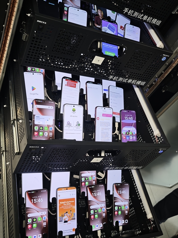OPPOのスマート端末テストラボは、世界最大規模の業界施設であり、高度に自動化された環境でテストが行なわれています。地上階面積は2000平方メートルを超え、2万台以上の携帯電話とタブレットが配置されており、400種類以上のOPPO機種をカバーしています。