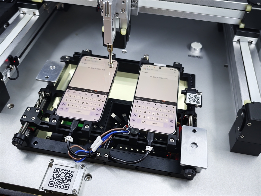 ロボットアームがユーザーのクリックや操作を真似て、高速カメラがその応答速度をミリ秒単位で記録することで、遅延や応答時間を正確にデータ化します。たとえば、ダイヤル画面の立ち上げ遅延を測定し、劣化テストを経た端末とそうでない端末の結果が一致すること(スムーズさが維持されていること)を確認します。