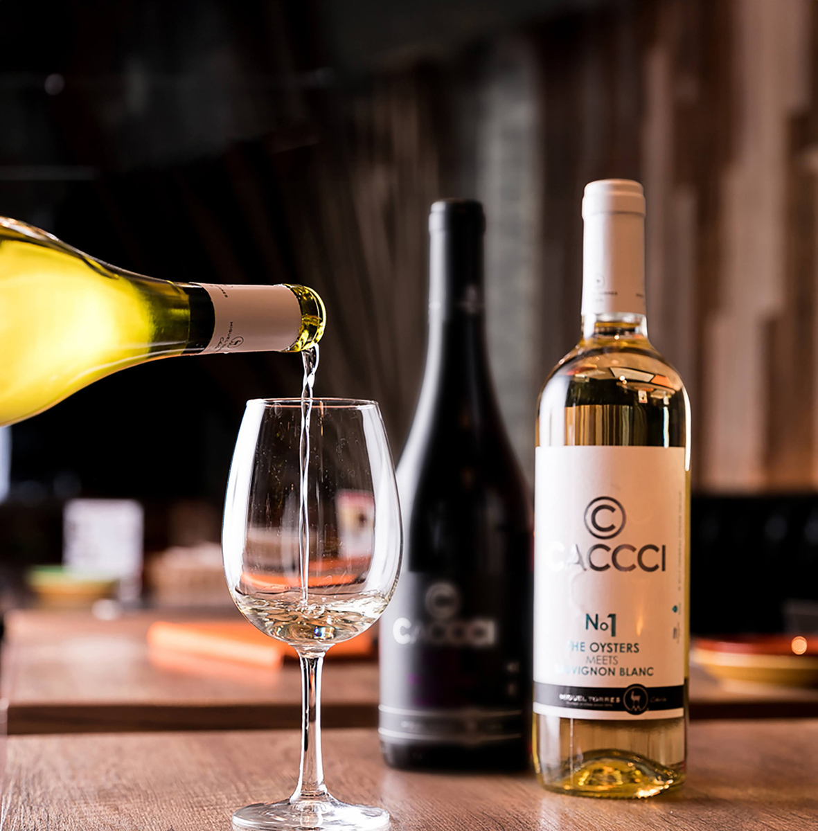 牡蠣に合わせて仕立てたハウスワインを特別価格で提供。白、赤、ロゼをそろえ、好みのペアリングが楽しめます。