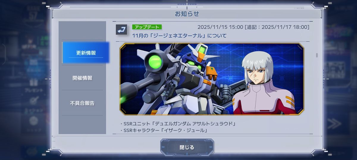 「ジージェネエターナル」12月中旬に新イベント「大規模攻略戦」開催 SEEDのイザークとデュエルを【仲間】にして育てる