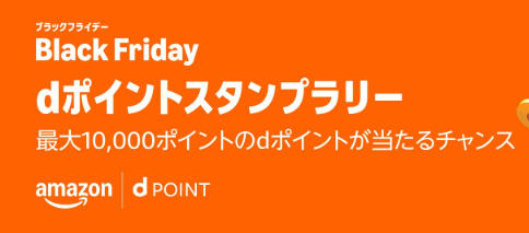 ドコモの「dアカウント」(ドコモ契約者以外でも作成可)とAmazonアカウントを初めて連携すると、最大1万ポイントが貰えるキャンペーンがブラックフライデーに合わせて開催中です。