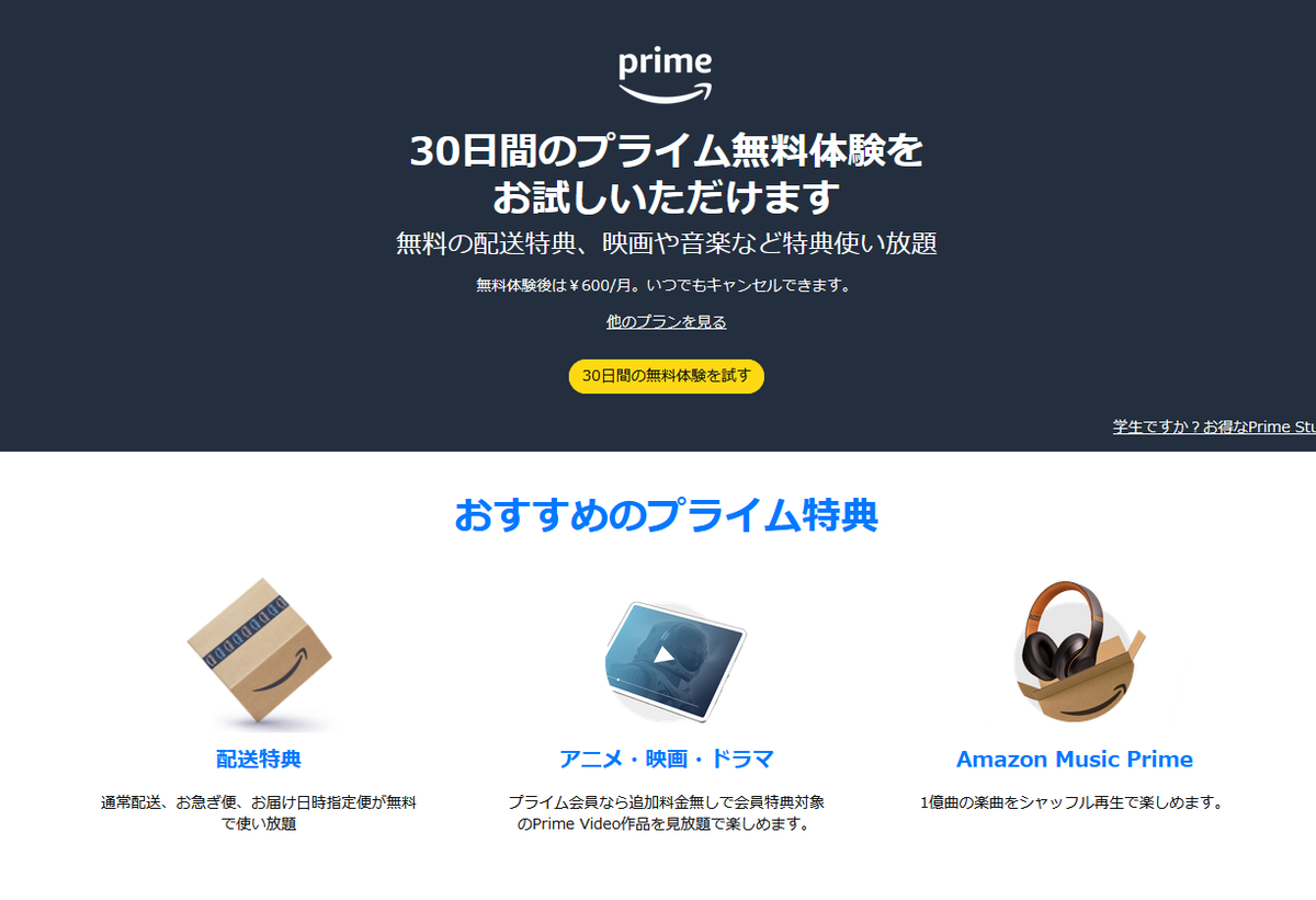 7月のAmazonプライムデーと異なり、ブラックフライデーは誰でも参加可能です。ただ、Amazonプライムは年5900円または月600円で、お急ぎ便の無料利用に、動画や音楽の配信サービスと特典多数。↓のボタンからこの機会に加入するのは大有りでしょう。
