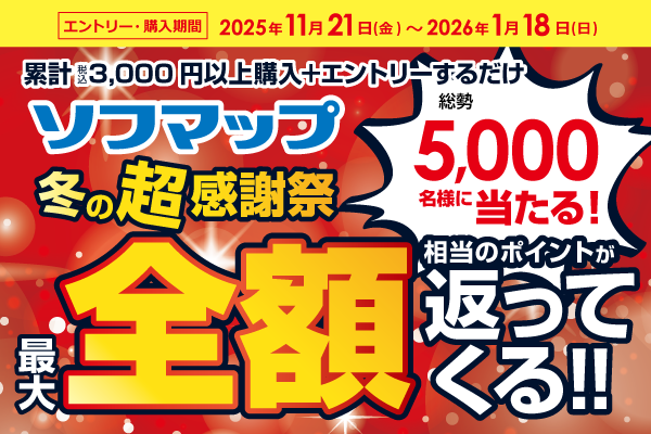 ソフマップは11月21日から2026年1月18日まで、全国のソフマップ店舗や公式通販サイト「ソフマップ・ドットコム」、アキバ☆ソフマップ、リコレ!にて「ソフマップ 冬の超感謝祭」を開催している。