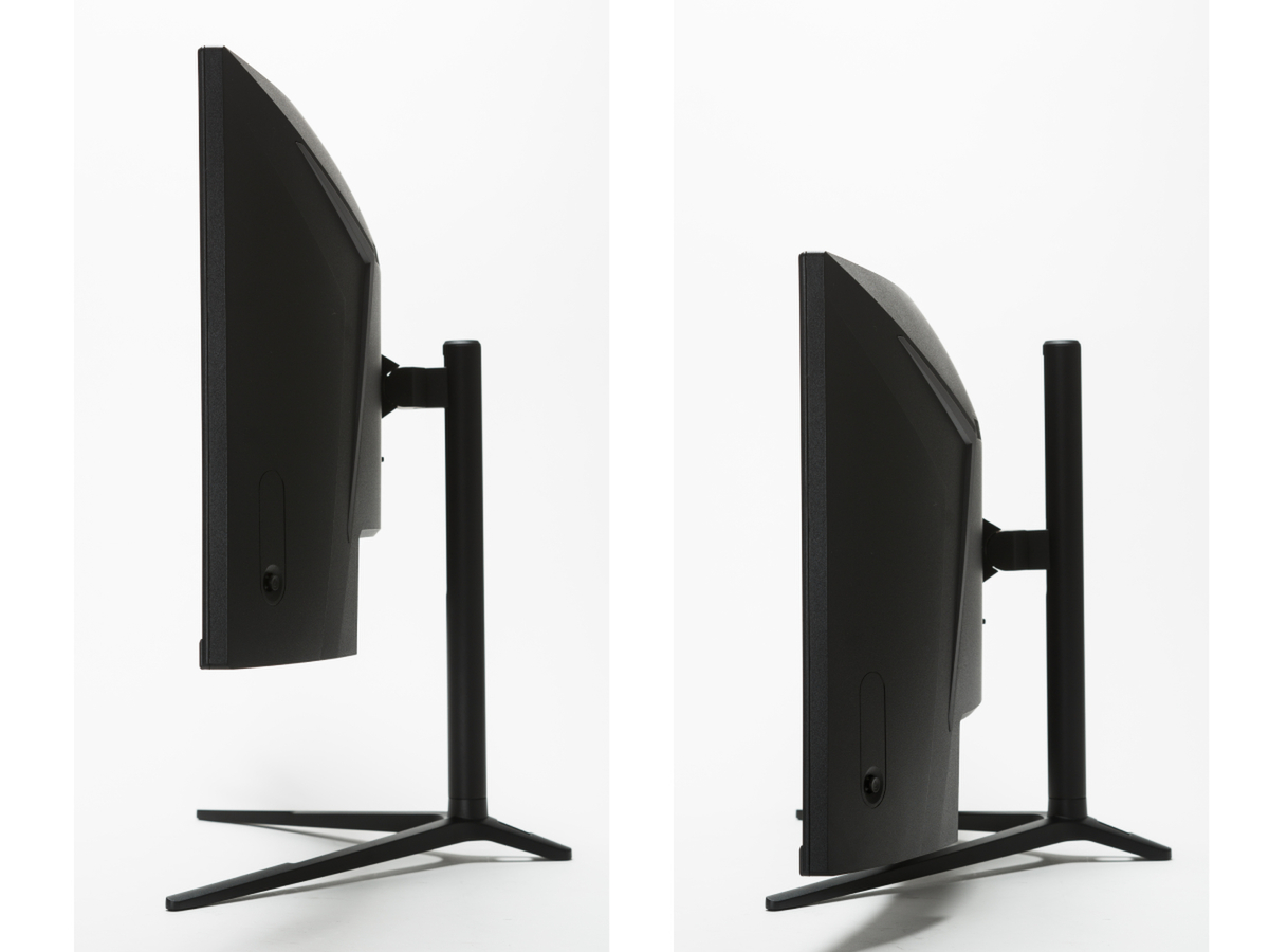 34型という画面サイズは、自宅に導入しやすいのもメリットだ。40型を超えてしまうと設置も困難になりがちだが、34型ならデスクトップにも収まりやすい。チルト、スイーベル、高さ調整が可能なため、自分に最適な画面位置に調整できるのも魅力だ。もし、設置場所にこだわるなら、ウルトラワイドに対応したモニターアームを使う手もあるだろう。