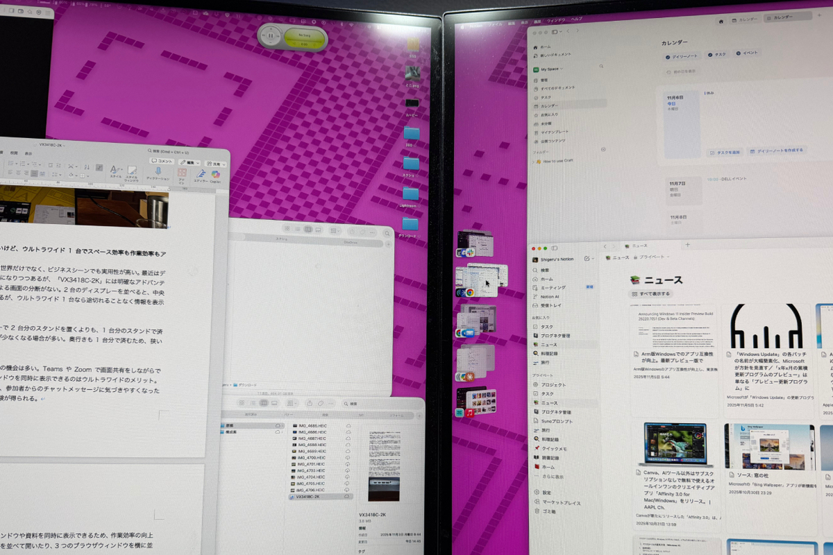 デュアルディスプレーもいいが、ウルトラワイド1台ならスペース効率もアップ