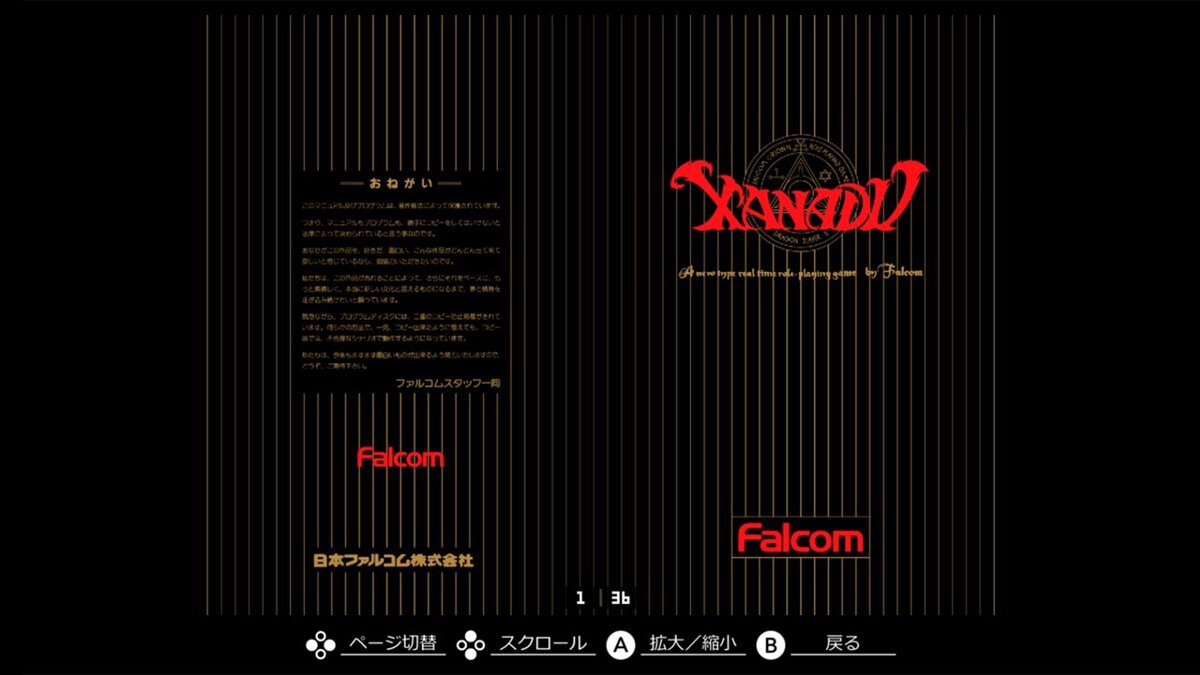 『EGGコンソール ザナドゥ MSX』は、当時の貴重なパッケージデザインやマニュアルをいつでも閲覧できる「ギャラリー」モードに対応している。