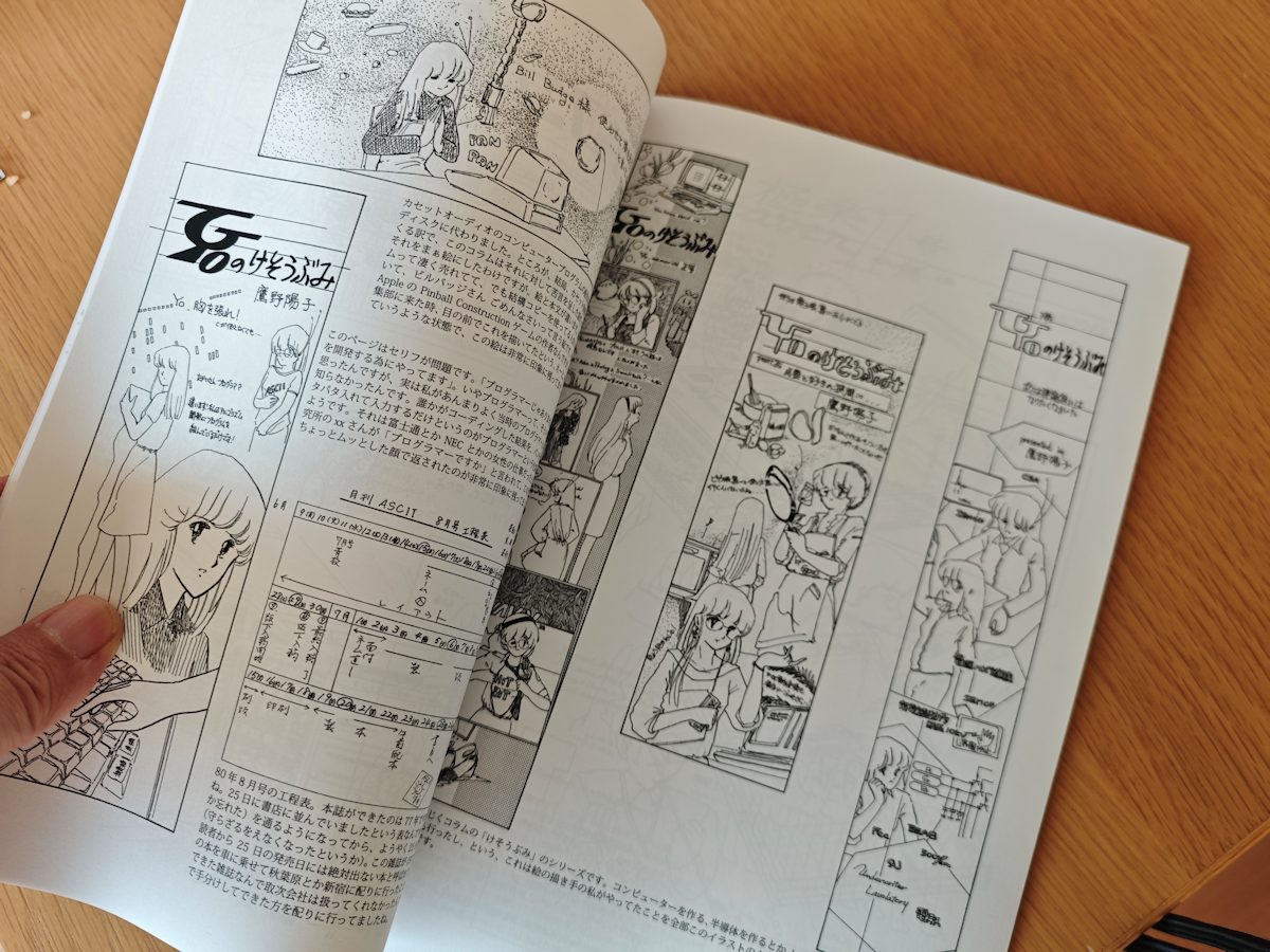 当時の読者にはお馴染み鷹野陽子さんの「Yoのけそうぶみ」。イラストの説明にプログラマという呼称に対する当時の興味深いエピソードが書かれている。その下には月刊アスキー1980年8月号の工程表! 「この雑誌が1977年にできてから何年かは読者から25日の発売日には絶対でない本と呼ばれていました」とある。