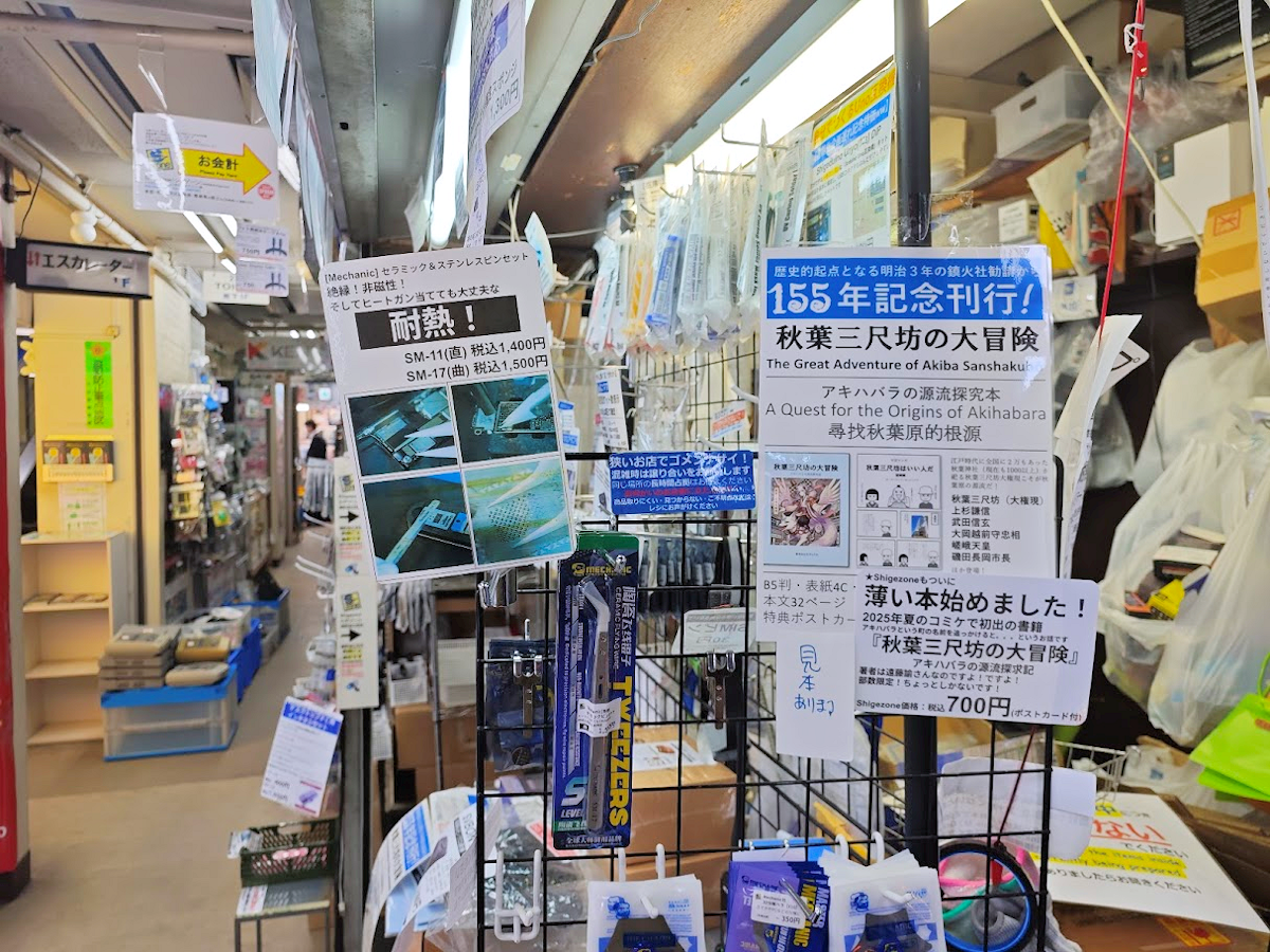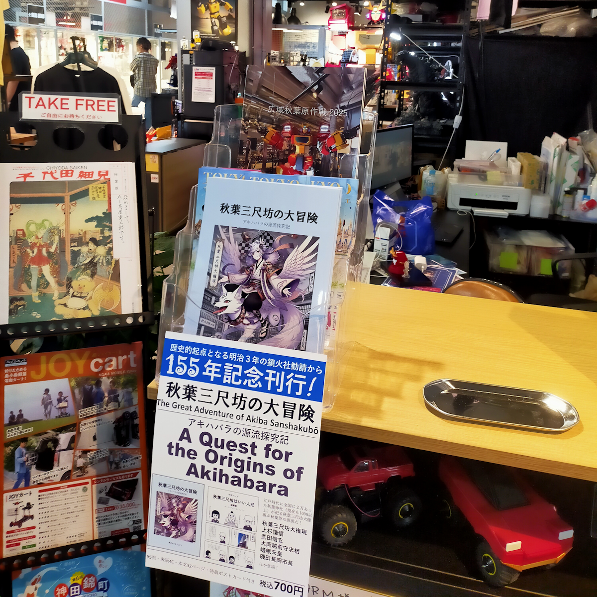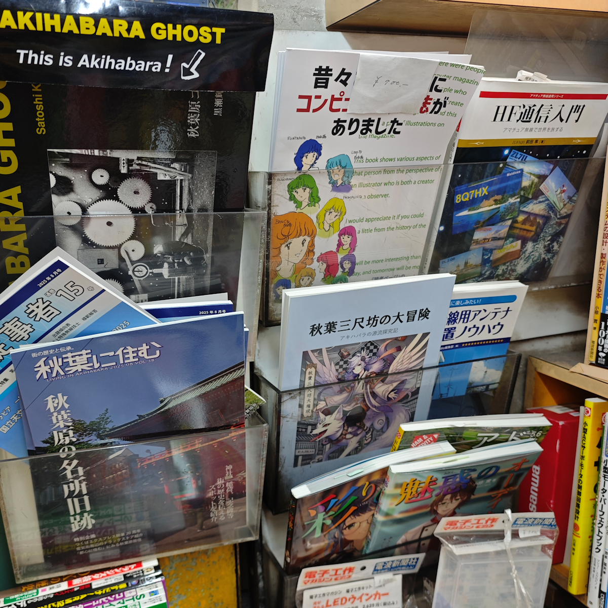 コミケでは、『秋葉三尺坊の大冒険』は24冊ほど売れたのだが、残った80冊(つまり100冊作ったわけだ)をどうしようかと思ったら、東京ラジオデパートのShigezoneさんが扱ってくれた。電子部品店のはずのShigezoneのオーナーは、もともと出版系の方なので、なんとなくやりたかったことと近かったらしく「薄い本はじめました」と書いて店頭にならべてくれた。やっぱり、秋葉原に関する本は秋葉原と相性がよいらしく、すでに3桁以上を売っていただいている。感謝。