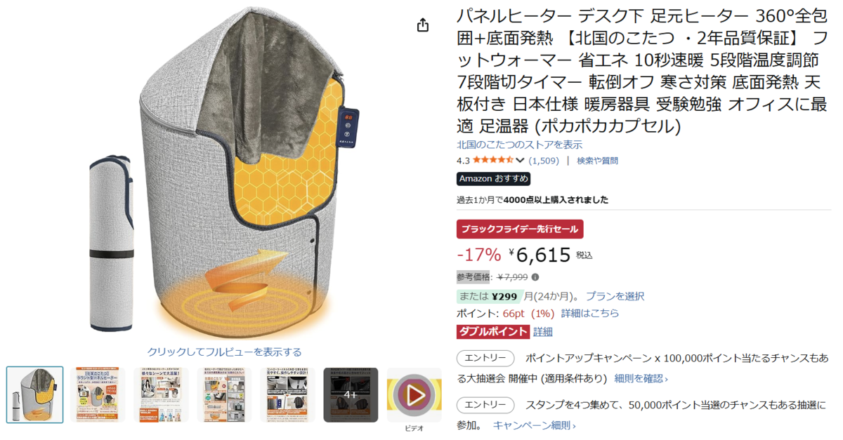 「北国のこたつ」のデスク下ヒーターがブラックフライデー先行セールで6,615円