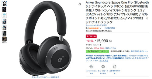 【Amazonブラックフライデー先行セール】Anker Soundcore Space One Pro(Bluetooth 5.3 ワイヤレス ヘッドホン)登場!