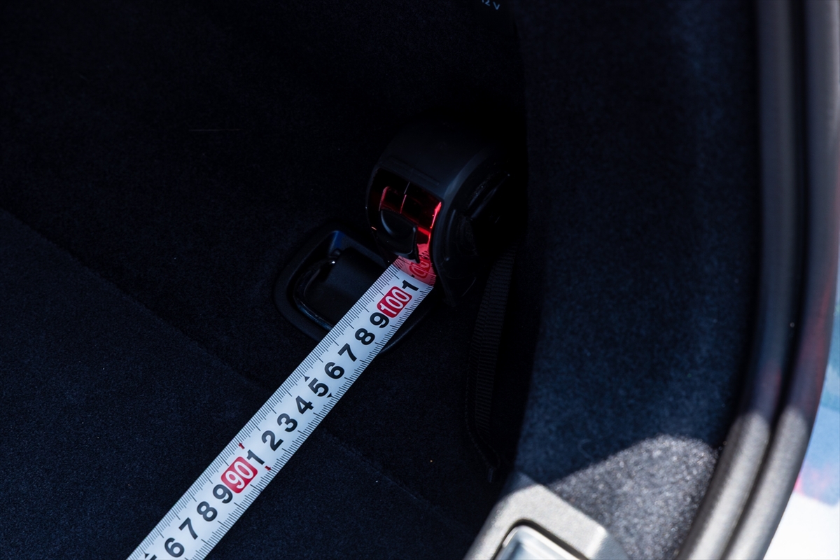 「それでもSUVの方が……」という方にために、後席の背もたれを立てた状態で寸法を測ってみました。適当な測り方ですが、奥行き方向で110cm、幅100cmはありそう。これだけあれば十分に広いと言えませんか?