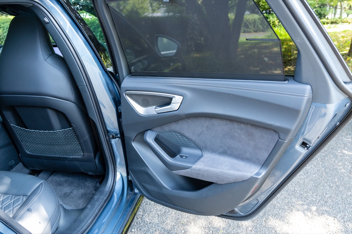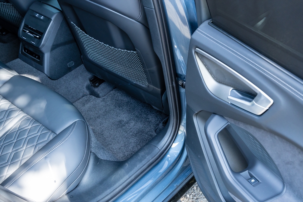 後席は従来よりホイールベースが70mm伸長していることもあってか、かなり広い印象。さらにヘッドルームも少し広くなっているそうで、快適そのものです。これならお偉いさんが乗っても文句は言われないハズ。プライバシーシェードもありますし、USB Type-Cの充電ポートも用意されています。