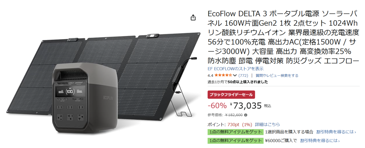 停電対策にもアウトドアにも使える、EcoFlow(エコフロー)のポータブル電源「DELTA 3」と160Wソーラーパネルのセットが、Amazonブラックフライデーでセール販売中です。