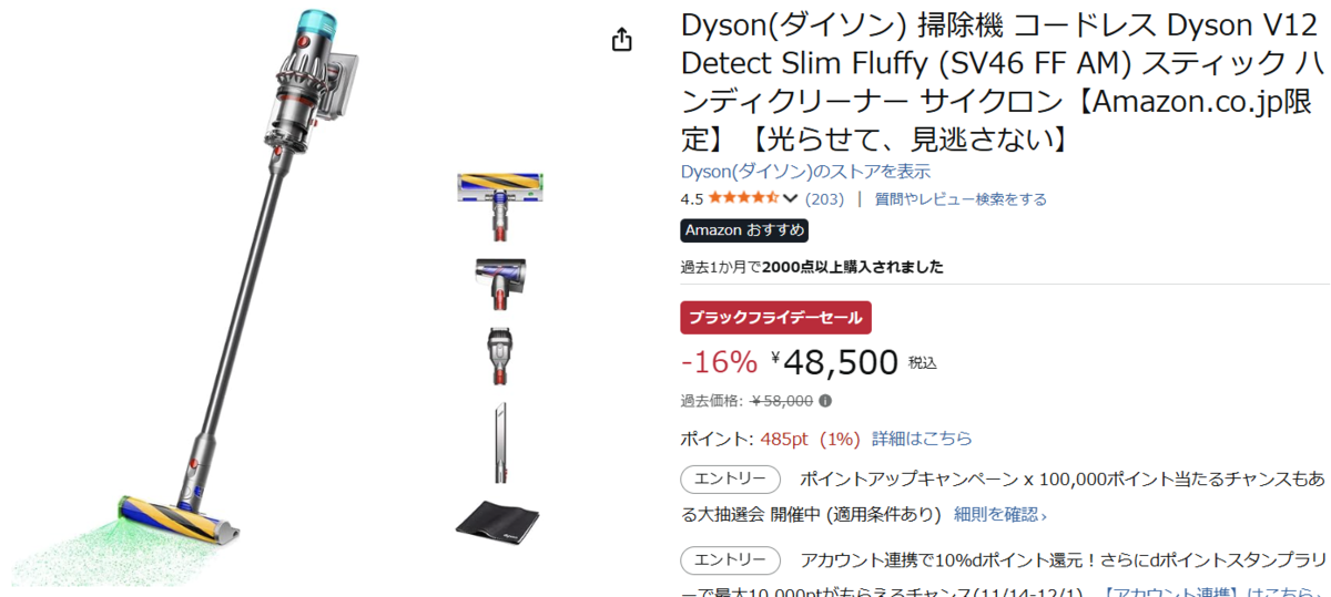 【Amazonブラックフライデーセール】Dyson 掃除機 コードレス Dyson V12 Detect Slim Fluffy(SV46 FF AM)登場!