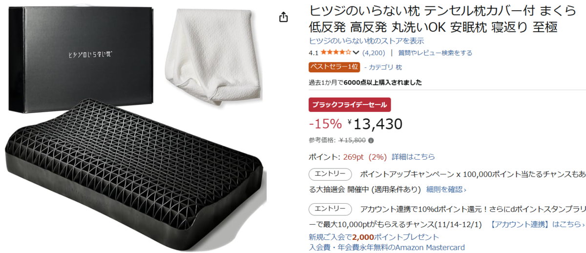 Amazonの枕カテゴリーでベストセラー1位を獲得している「ヒツジのいらない枕」がAmazonブラックフライデーセールに登場。