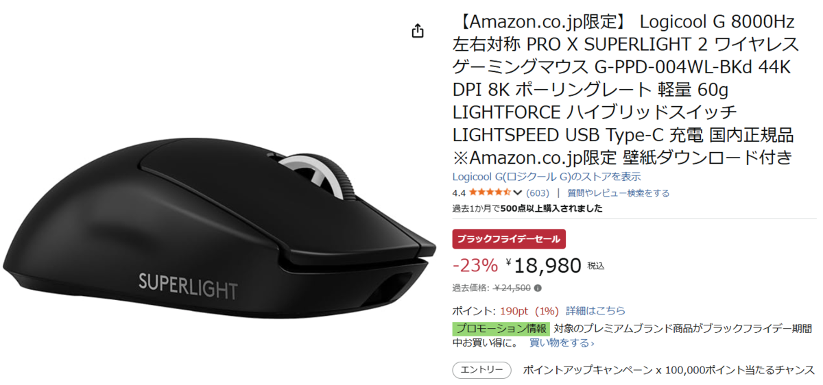 【Amazonブラックフライデーセール】ワイヤレスゲーミングマウス「PRO X SUPERLIGHT 2」【Amazon.co.jp限定】 登場!