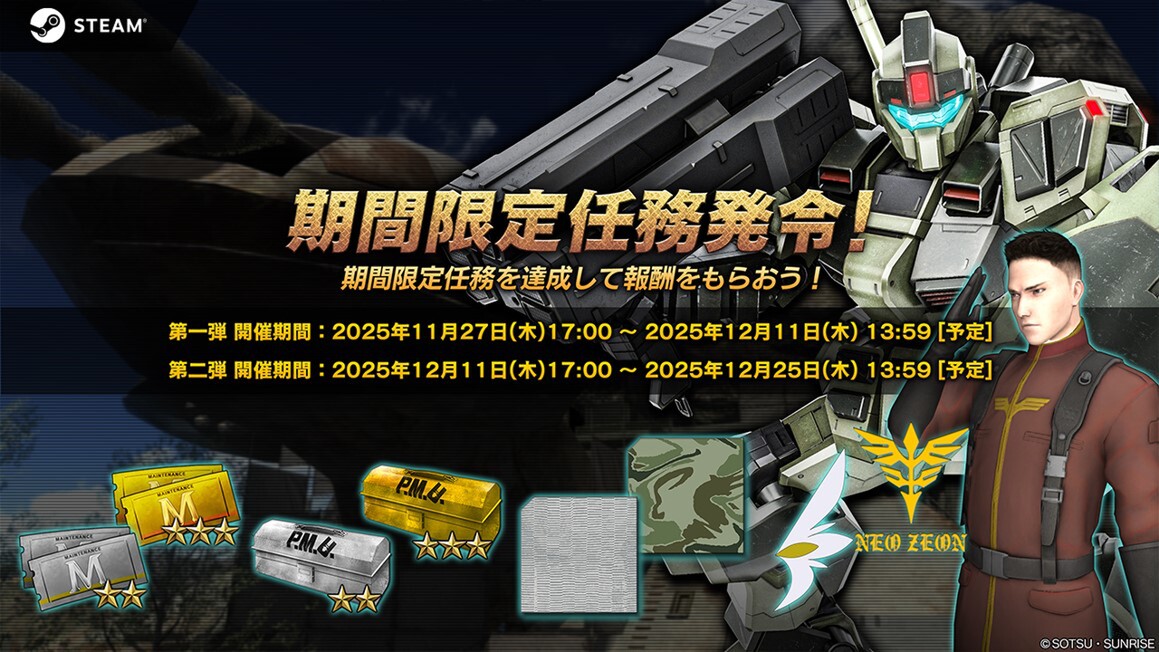 「デスティニーガンダム」の実装にあわせて、 PS版とPC(Steam)版双方で、2025年11月27日より 「デスティニーガンダム確定STEP UP抽選配給」、並びにデスティニーガンダム向けの「カスタムパーツ確定STEP UP抽選配給」を開催。
