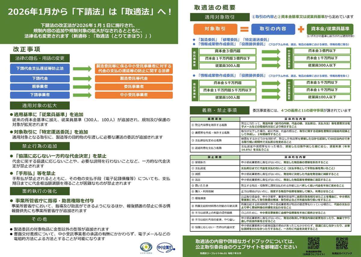 早速、日本語の能力が求められるプレゼンスライドを作成してみよう。年明けに下請法が改正されるが、そのポイントをまとめた資料を読み込ませ、1枚にまとめてもらった。生成AIはテキストでまとめるならお手の物だが、画像にするのは難しかった。どうせなら、「霞が関パワポ」と呼ばれる、情報てんこ盛りスライドにしてもらおう。