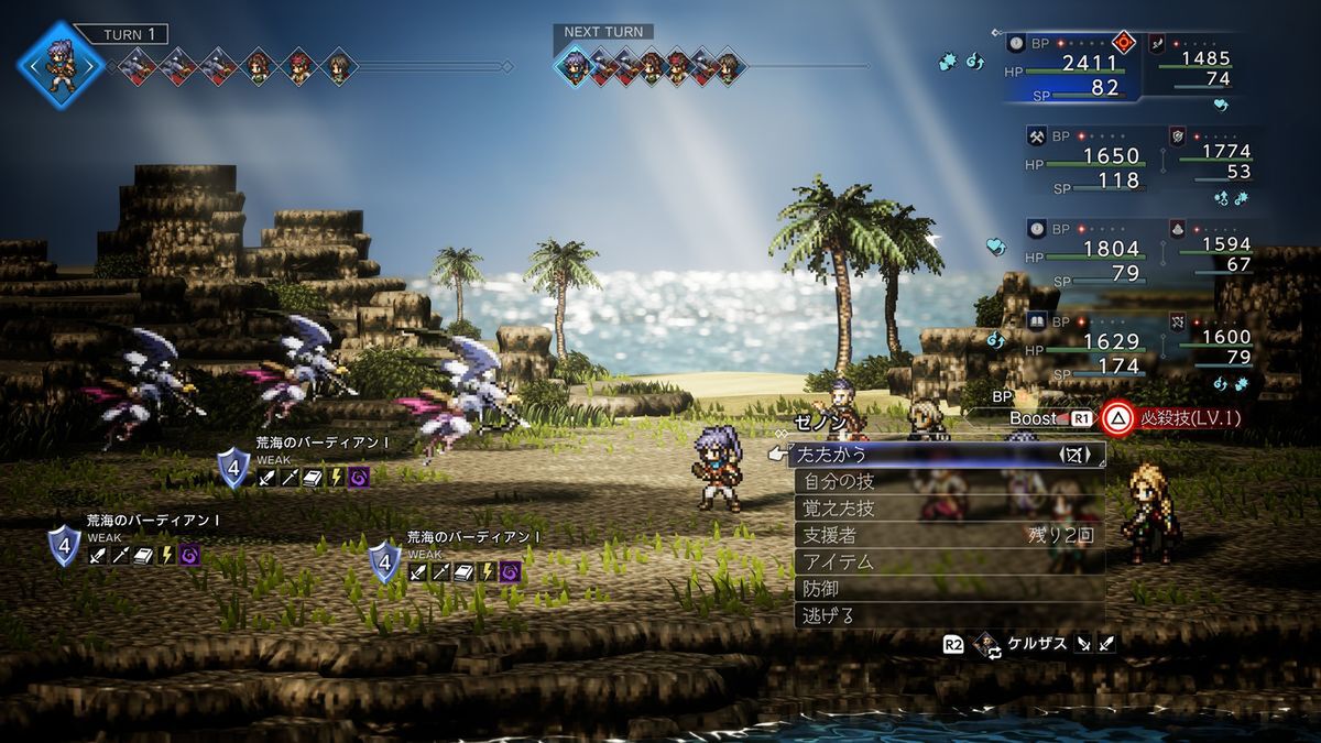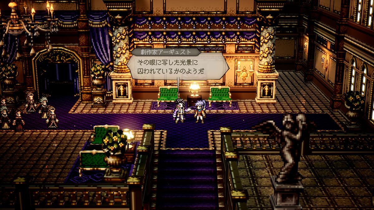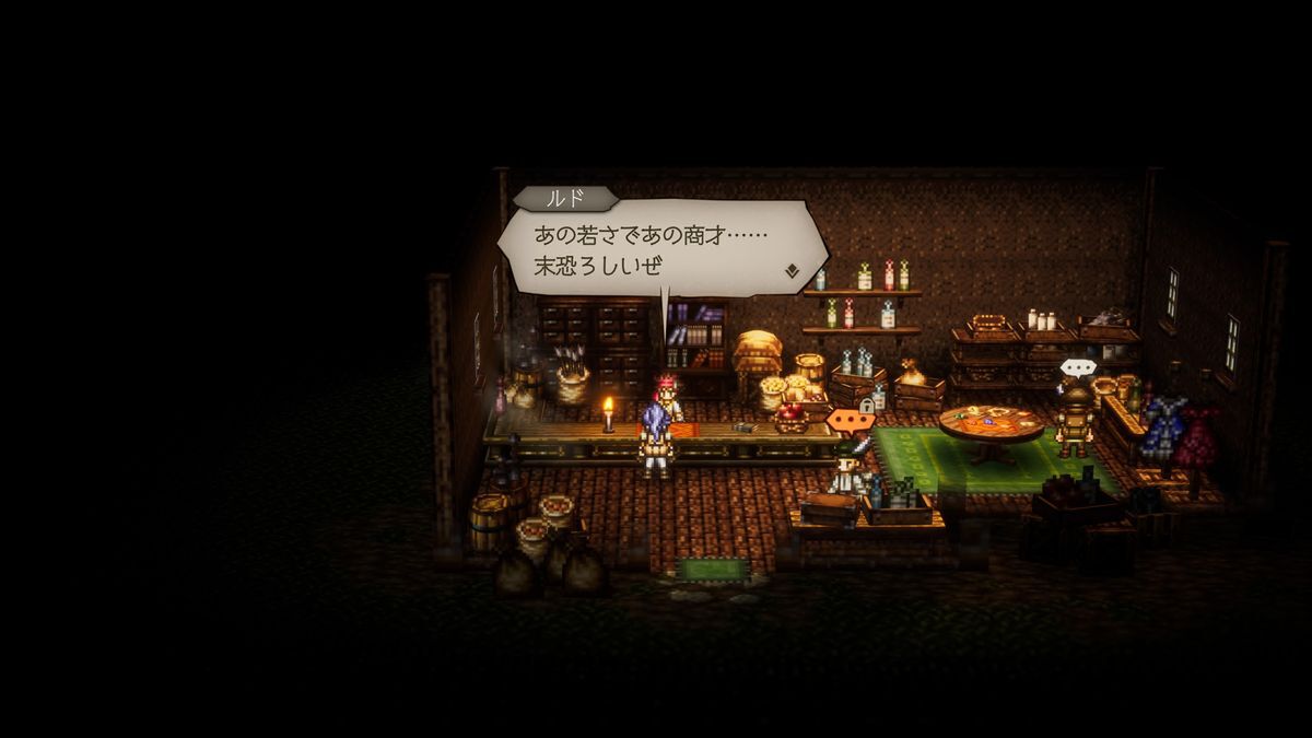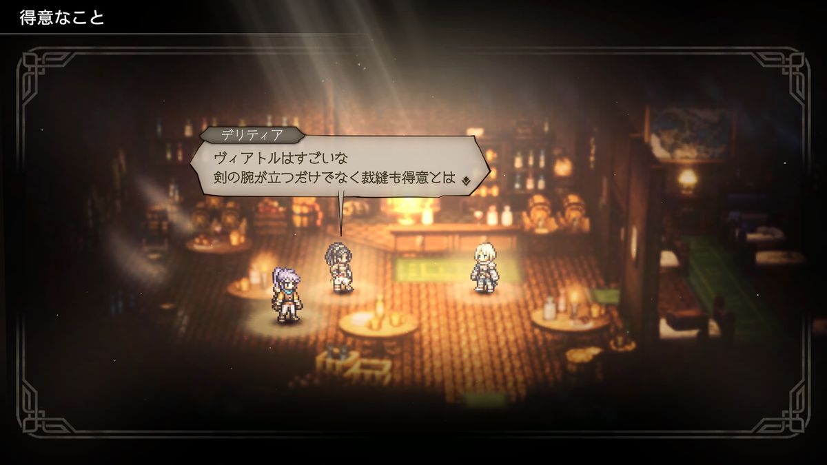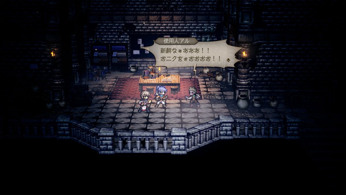 ストーリーは『大陸の覇者』ベースの復讐編をメインに、もう一本『オクトラ0』専用の復興編を並行して進められる形式。復興編は明るい雰囲気で進むので、ガンガン先に進めたくなる魅力があった。
