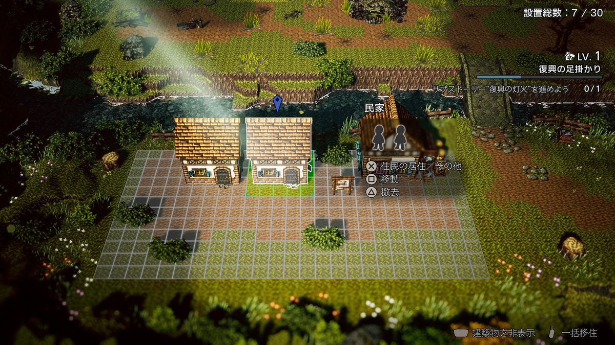 本作では敵に滅ぼされた故郷をイチから復興する物語が展開。その際、建物の配置や誰を住まわせるかはプレイヤーが決められる。同じ家に特定のキャラを住ませると、限定会話が聞けることも。