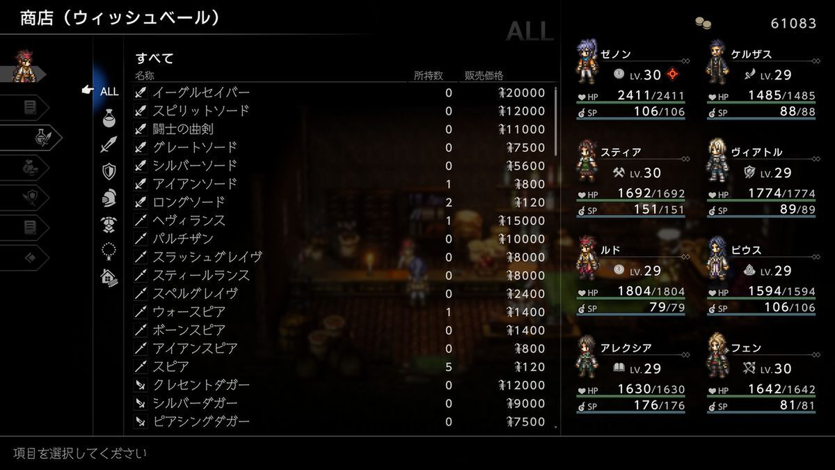 ほかに「これ便利!」と思ったのは、「商店」の品ぞろえがこれまで行った町のラインアップ詰め合わせだったことだ。どこで強力な装備を売っていたか忘れがちなので、一括で見られるのは超助かる!