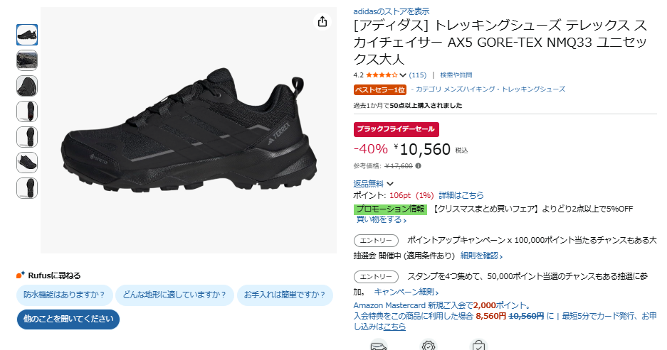 アディダスのTERREX SKYCHASER AX5 GTXが40%オフ!