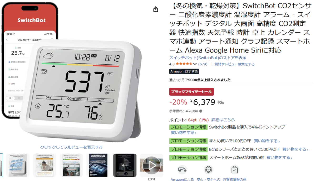 【Amazonブラックフライデーセール】SwitchBot CO2センサー(温湿度計)登場!