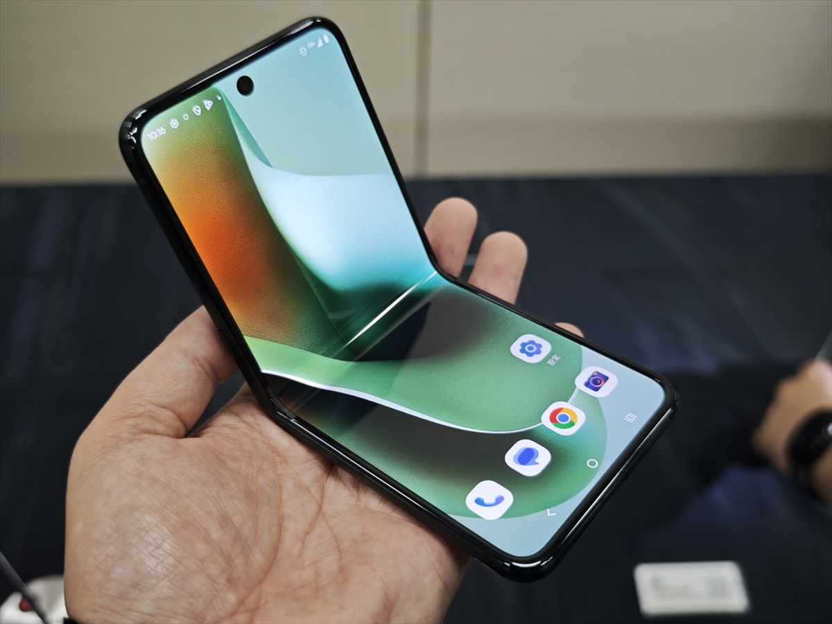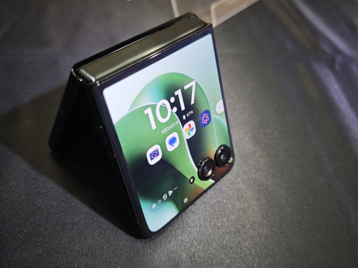 大きなアウトディスプレーは4型で、閉じた状態なら片手で簡単に操作できます。このアウトディスプレーはリフレッシュレート165Hzに対応し、カメラやメールに加え、ほとんどのアプリを使えるのが特徴です。