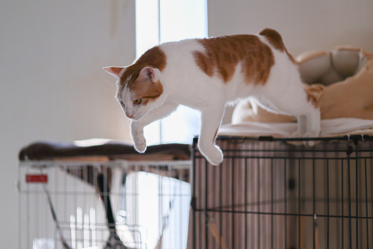 というわけで、今回はEOS R6 Mark IIIに24-105mm F4と85mm F2の2本のレンズを使い、動きのあるシーンを中心に2匹の猫を追ってみた。