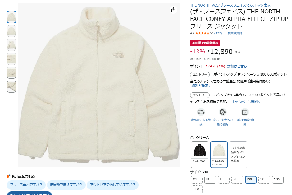 THE NORTH FACEの人気フリースCOMFY ALPHA FLEECE ZIP UP(2XL)が13%OFFの12,890円で、11月24日(月)開始のAmazonブラックフライデーセールに登場しています!