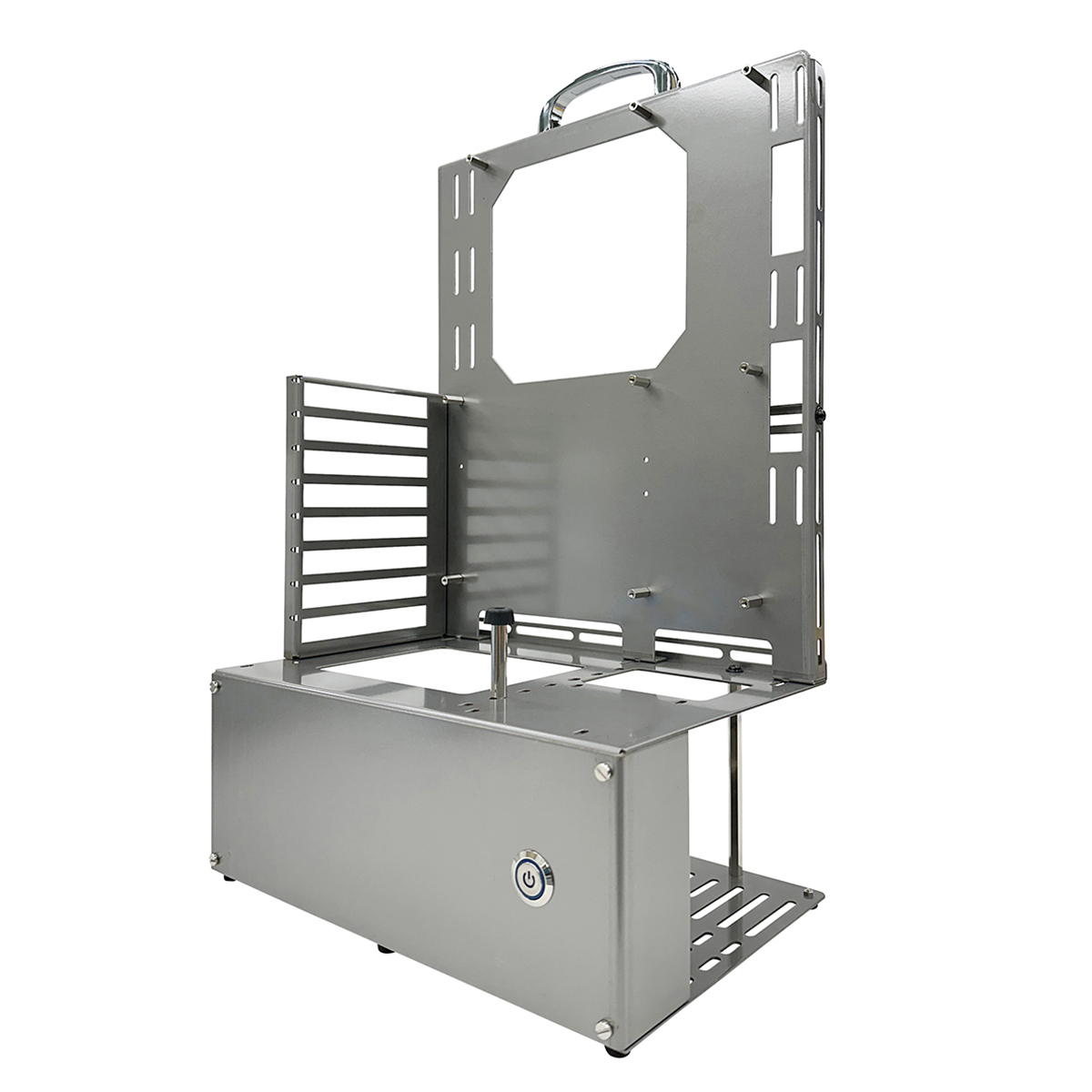 『オープンフレーム ver.ATX 侘び錆び』は、ATX、MicroATX、mini-DTX、mini-ITXといった多種多様なマザーボードに対応。持ち運びに便利な取っ手付きで、パーツの検証用PCフレームとしても利用可能だ。グラフィックボードの垂直設置(VGAステイ搭載)や水冷クーラー(最大360mm対応)の自由な配置を可能にする工夫が施されている。