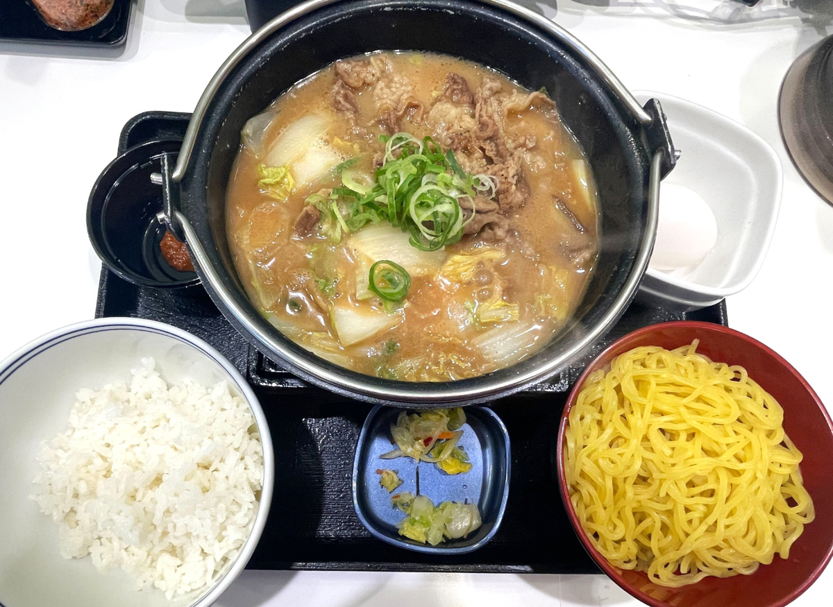 吉野家は「牛肉玉ラーメン鍋膳(とんこつ)」を11月27日より販売開始しました。はたしてお味は?