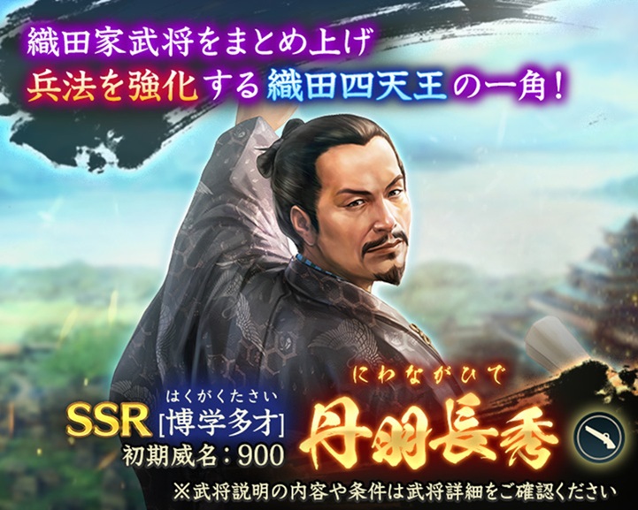 SSR【博学多才】丹羽長秀とSSR【古今伝授】細川藤孝をピックアップした特別登用も開催!