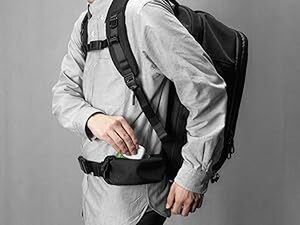 着脱可能な腰ベルトはポケット付きで、よく使うイヤホンなどの小物入れに最適です。