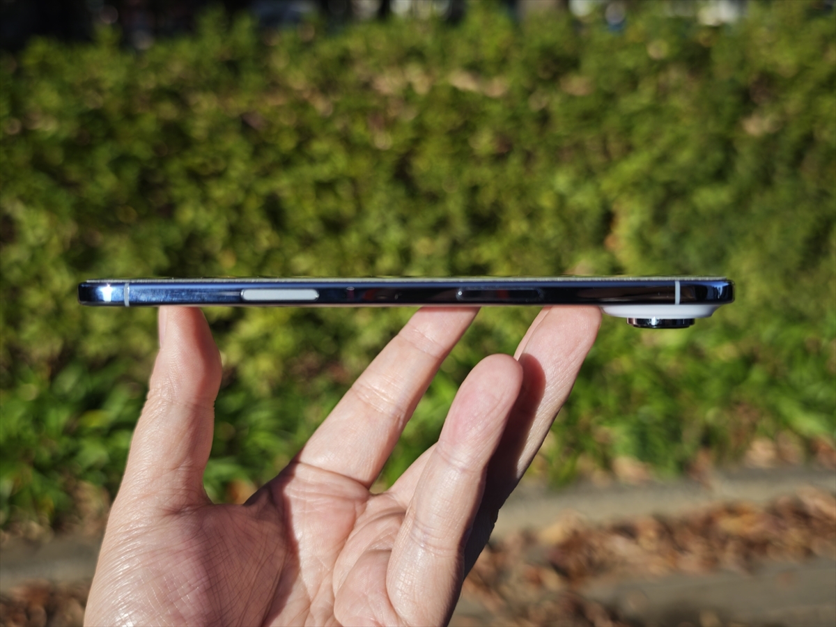 しかも、極限までスリムな筐体でありながら、使っている間まったく不安を感じることがありません。チタニウムフレームとセラミックシールド(ガラス)により、薄型モデルにありがちなペラペラ感とは無縁の、堅牢な筐体に仕上がっています。1ヵ月以上ガシガシ使ってきましたが、毎回手にするたび“いいな”と思わされます。スマホの未来を感じさせる存在です。