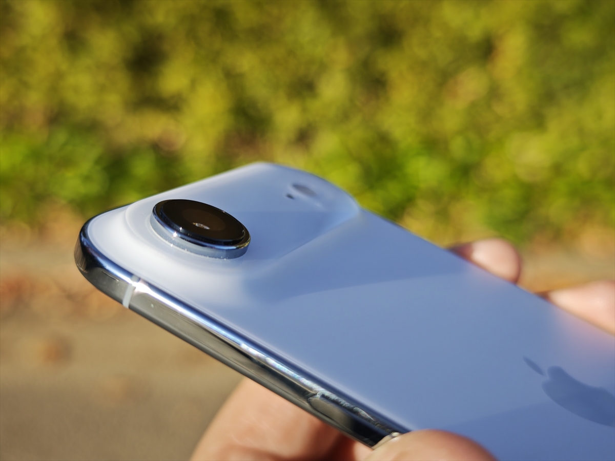 カメラはメイン1基のみ。超広角も望遠専用レンズも非搭載ついでにマクロ撮影にも対応していません。実用的には48MPの高解像度と2倍ズームで大抵のシーンは問題無いのですが、複数カメラ搭載iPhoneに比べると撮影バリエーションは制限されます。