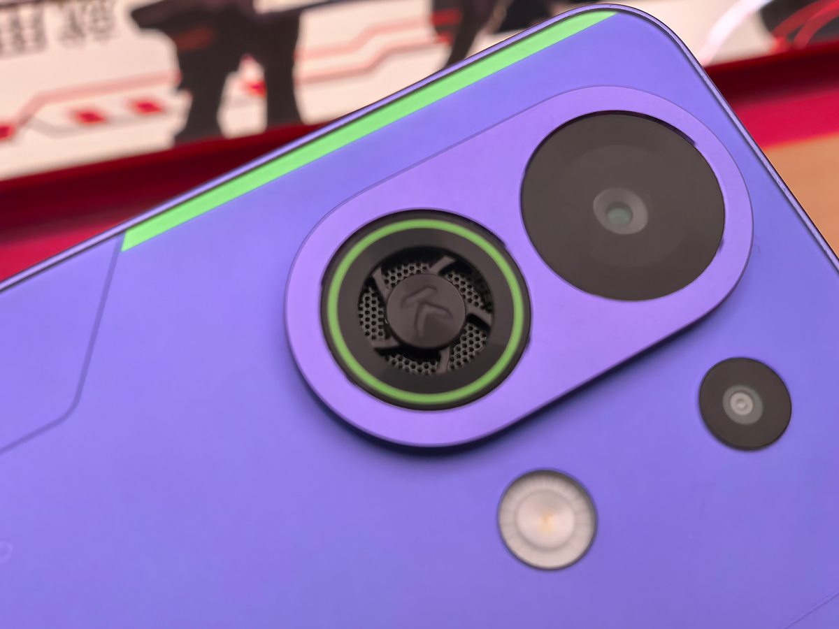 実はクアルコムのSnapdragon 8s Gen 4搭載の上位モデル「K13 Turbo Plus」も展示されていたのですが、この写真のカラバリはK13 Turboだけの展示でした。紫ボディーに緑のライン、となるとすぐに思い浮かぶのはエヴァンゲリオン初号機のカラーリング。ゲーミングモデルにふさわしいカラバリです。