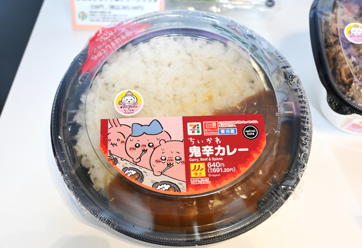 ちいかわたちが全身真っ赤になりながら挑戦した“うまカレー(鬼)”がもとネタ。牛肉の旨みとスパイスが引き立つ仕上がり。水を飲んではいけない……。