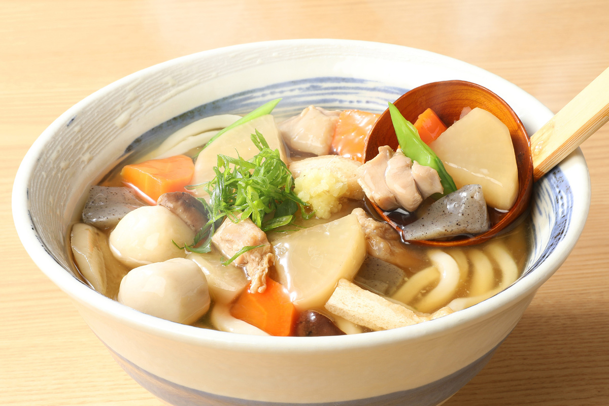 毎年人気のけんちんうどんを冬季仕様に仕上げています。ごろっと大きめに切った野菜と鶏肉の旨味が出汁に溶け込み、うどんにしっかりと絡む構成です。おろしたての生しょうがが香る一杯です。