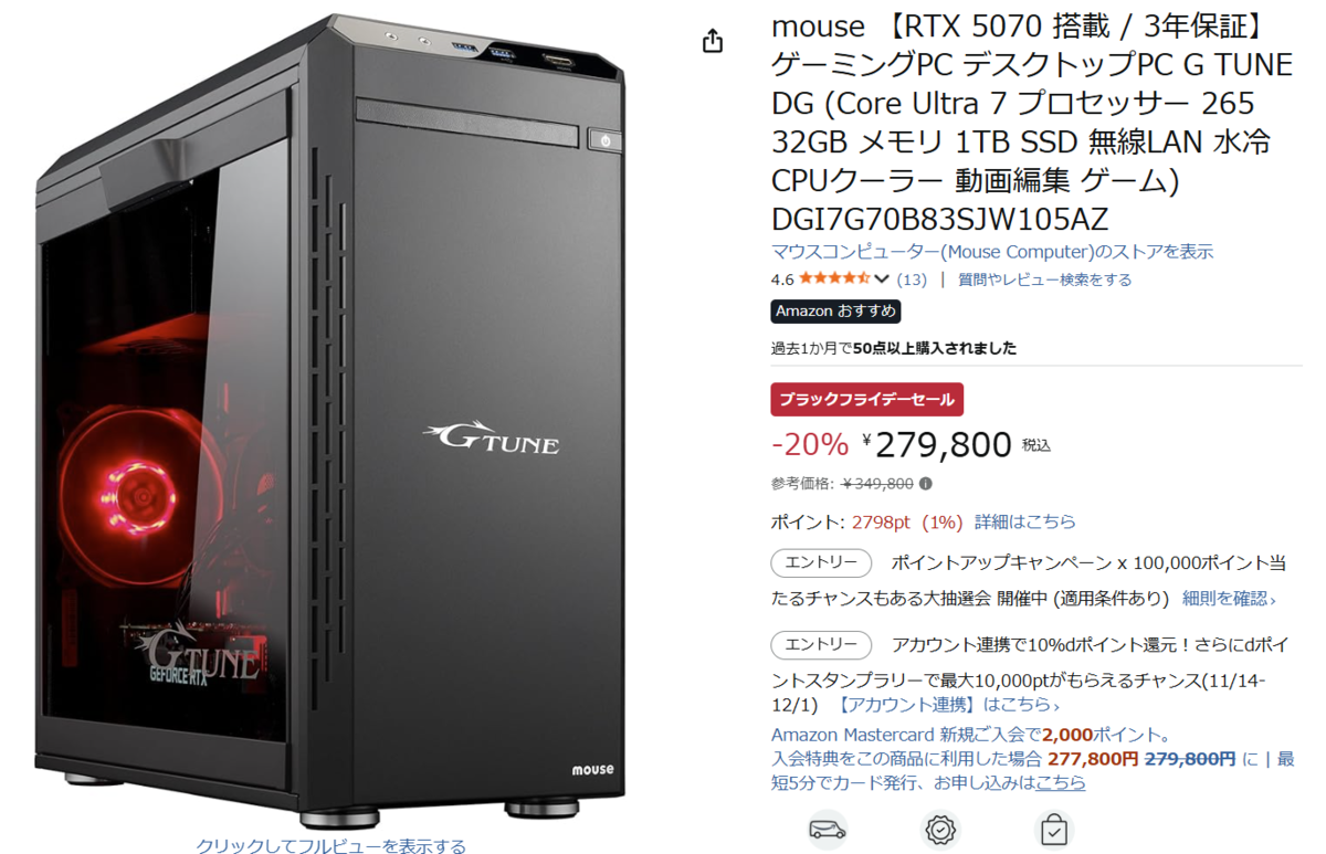 【Amazonブラックフライデー】mouse ゲーミングPC「G TUNE DG(RTX 5070)」登場!