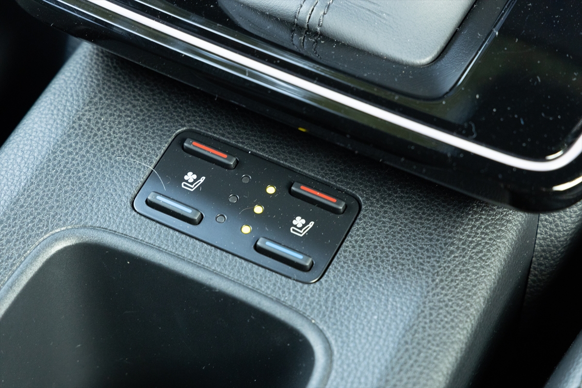 「私をスキーに……」の時に役立つのがシートヒーター。そのスイッチの位置が変わりました。そしてよく見ると、ベンチレーション機能(シートクーラー)も。これはマイナーチェンジ前にはなかったもので、今年のような暑い夏には助かります。
