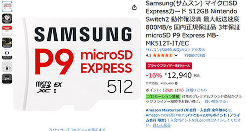 【Switch 2動作確認済】大作ゲーム派は要チェック!マイクロSD Express(512GB)がブラックフライデー特価