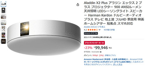 Aladdin X(アラジン エックス)の照明一体型プロジェクター「Aladdin X2 Plus」が、Amazonブラックフライデーセールに登場しました。