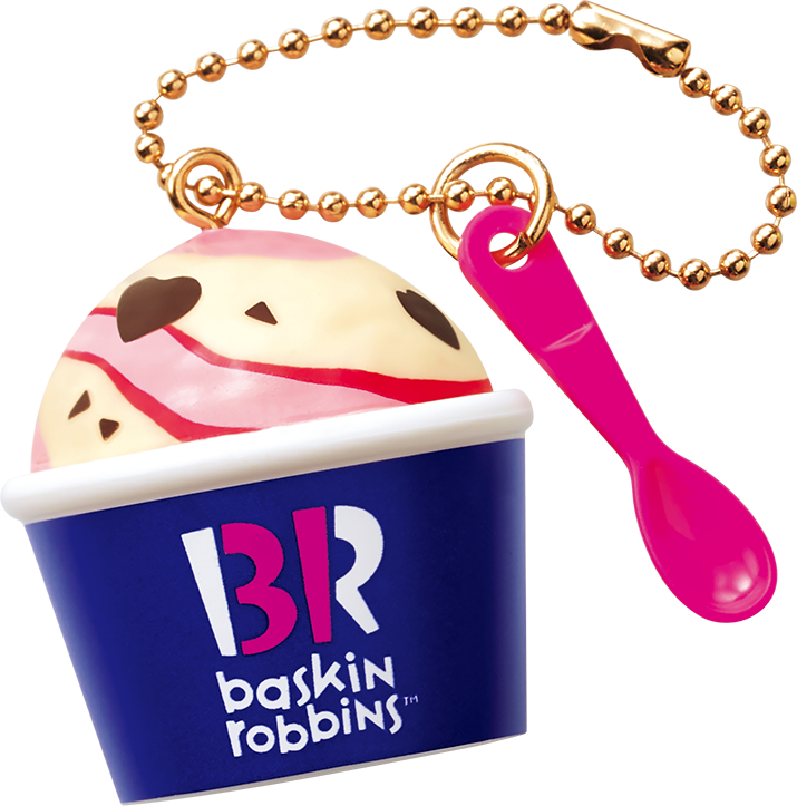 カップ型キーホルダーはラブポーションサーティワンとピンクのスプーンがセットになっています。