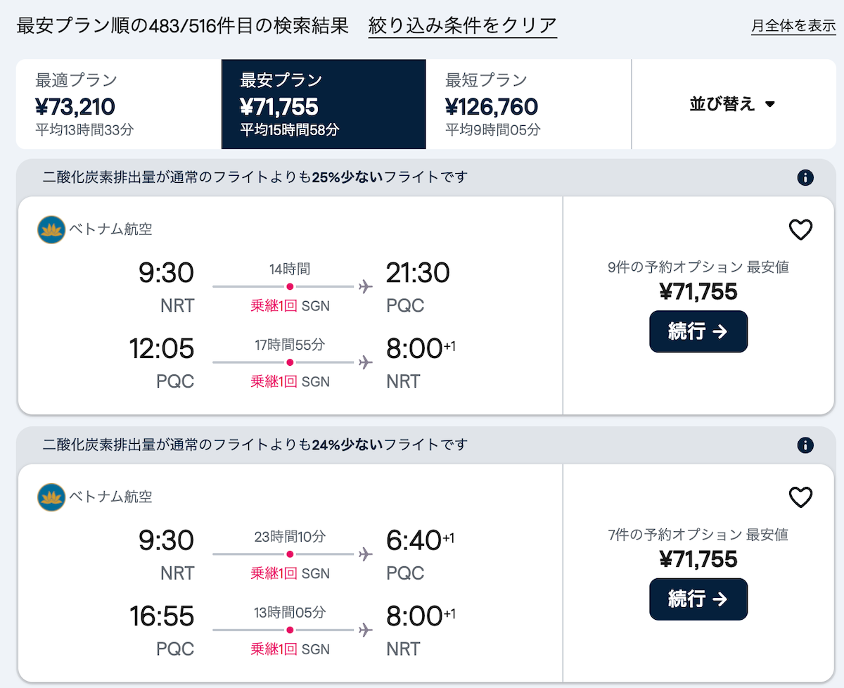 最寄りの空港はフーコック空港(PQC)で、ハノイやホーチミンから国内線に乗り換えてアクセスするか、香港から香港エクスプレス航空も就航しています。航空券は原稿執筆時の段階で、3月24日発/29日着のベトナム航空(成田発)で7万2000円弱といったところ。東京発だと繁忙期をずらせば5万円台前半からといった感じです。
