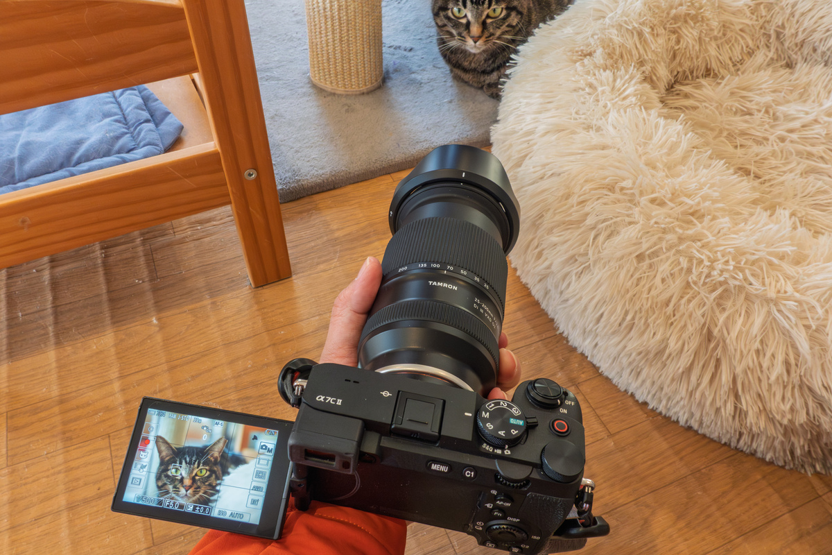 今回使ったタムロンのこのレンズは、ほかの高倍率ズームに比べて開放F値がちょっと小さいのが良いところ。AF速度も問題ない。大事なのは猫との出会いを逃さない機動力なわけで、こういうレンズを1本持っておくと、めちゃ楽で堕落できるのでオススメ。みんな一緒に堕落しよう。