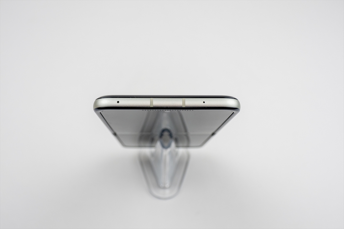本体右側面の上部パーツに、指紋認証センサー一体形の電源ボタンと音量ボタンを装備。SIMスロットは本体左側面の上部に配置されており、SIMピンを使って取り出すタイプ。SIMトレーはnanoSIMが1枚セットでき、microSDには非対応。