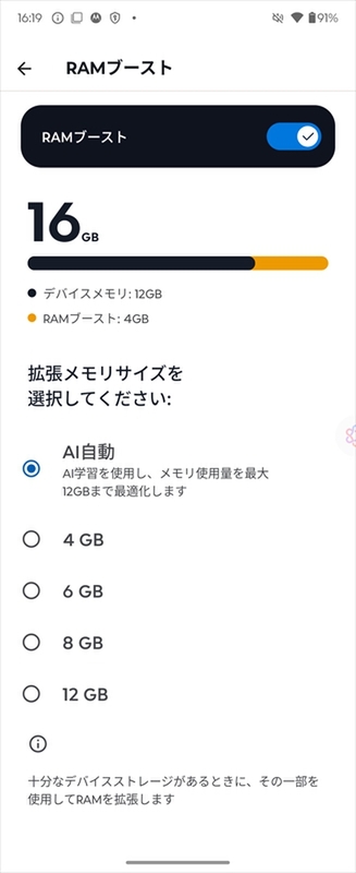 メモリーに関してはRAMブースト機能を搭載しており、内蔵ストレージを利用して最大12GBを追加可能。また「AI自動学習」も搭載しており、自動で最適なRAMブースト量を調整する機能も利用可能だ。
