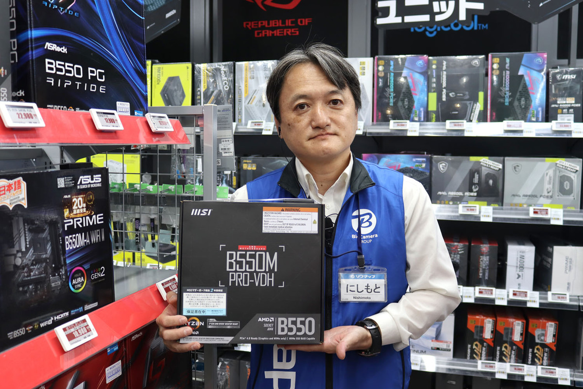 ここで、西本さんのお気に入り製品としてMSI「B550M PRO-VDH」の名前が挙がった。店頭価格7000円を切る格安のAM4マザーボードで、低予算でパソコンを組みたい場合に最適とのこと。西本さん自身も同機にWi-Fiが付いたモデル「B550M PRO-VDH WIFI」が格安のときに購入して、現在愛用しているそうだ。
